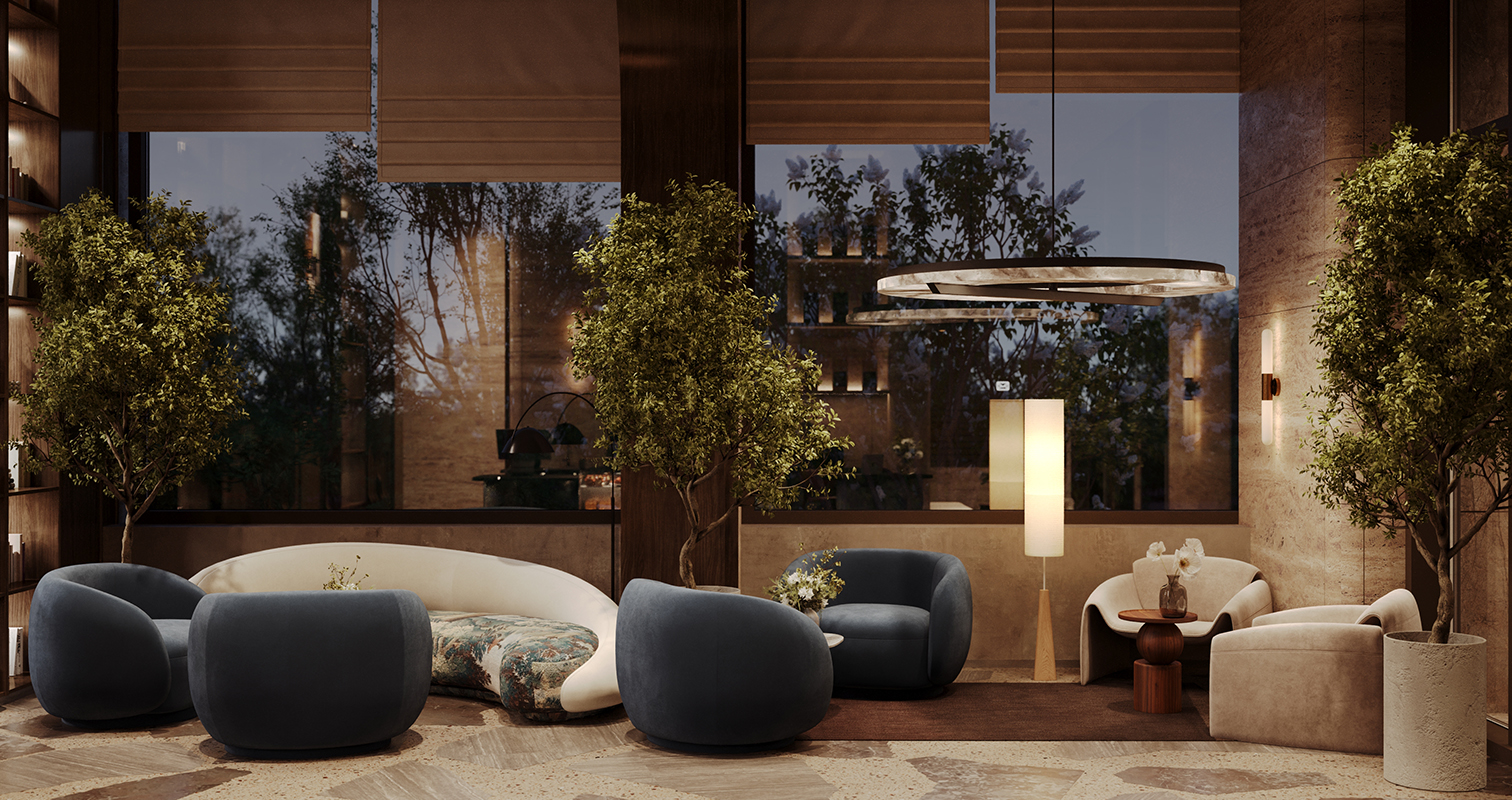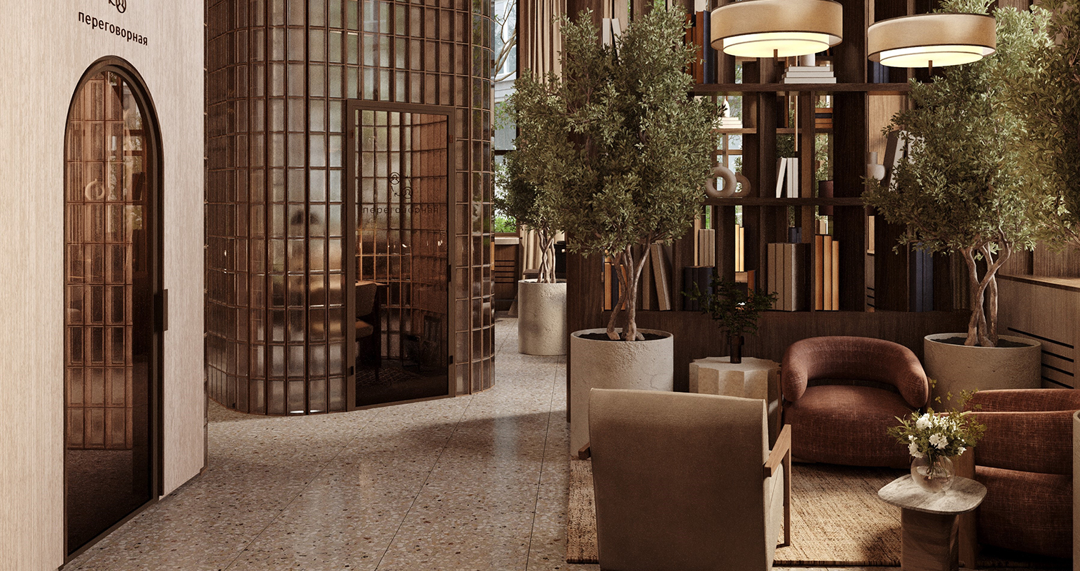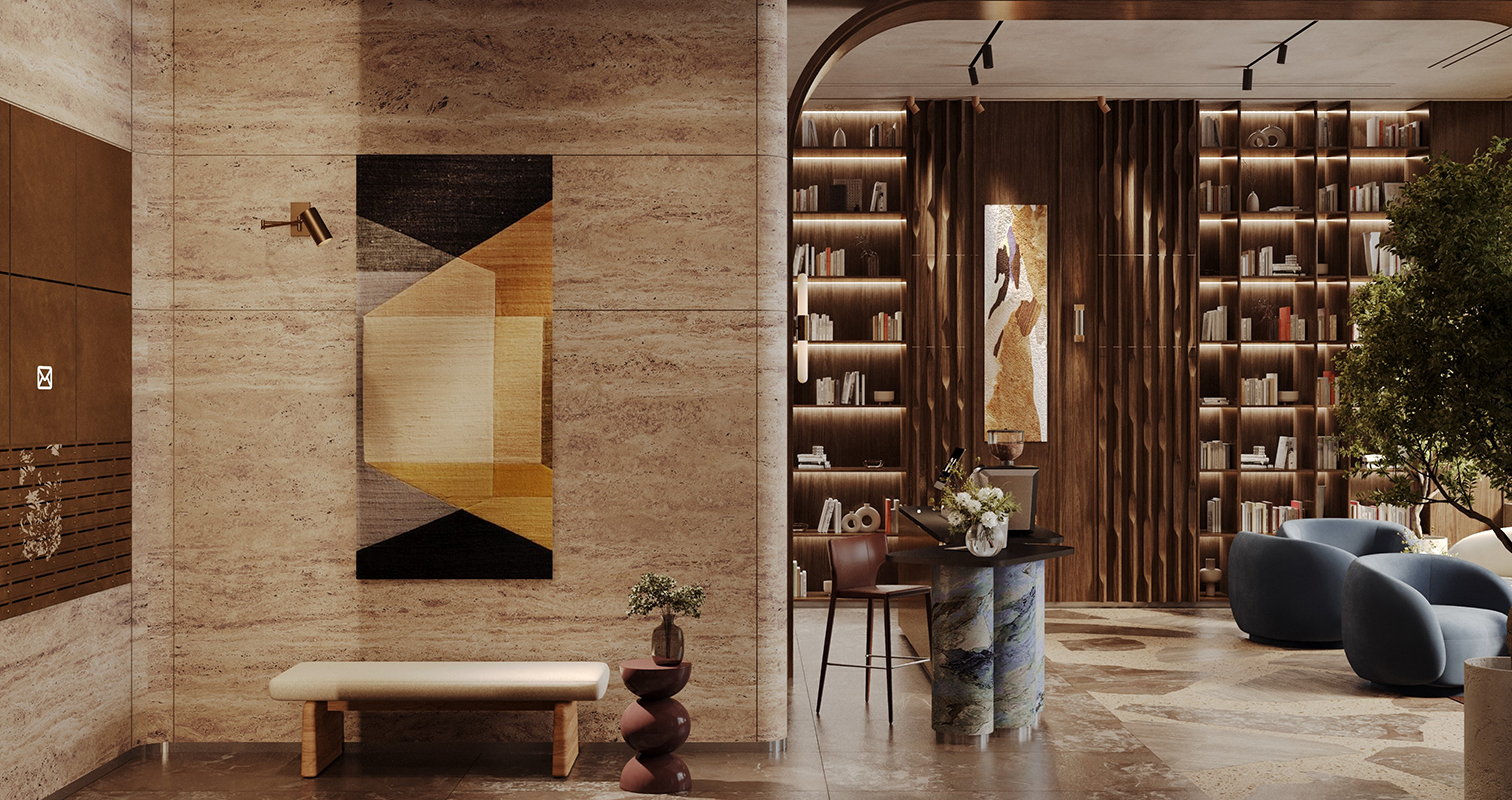 Лобби организованы в центральные и приватные зоны, где гармонично сочетаются эстетика и удобство.